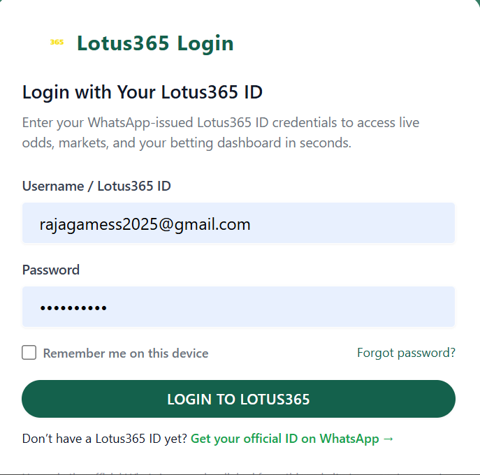 On Lotus365 IPL, registration is designed to be simple and typically involves ID generation via support channels such as WhatsApp (as described on their official portal).